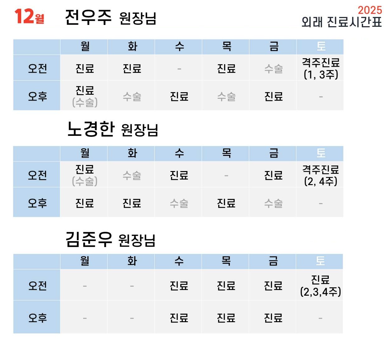 2025년 12월 진료안내